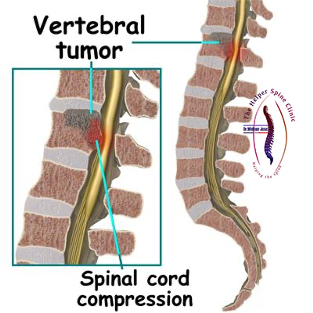 • Primary tumors: Originating within the spine or spinal cord (e.g., meningiomas, schwannomas)